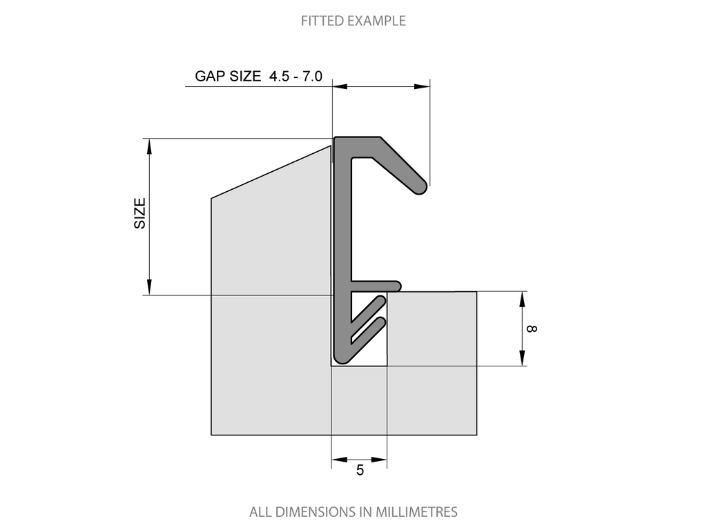 This product locates into a 5mm wide by 8mm deep groove in your frame. It seals gaps between 4.5mm to 7mm when the window or door is closed helping keep your home air and watertight. The flipper allows for lower closing forces compared to bubble seals. The height of the section above the groove is 18mm but also available in 15mm and 18mm. This product is brown but also available in white and black.